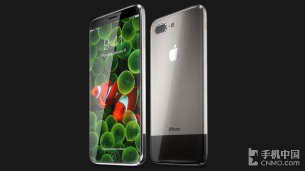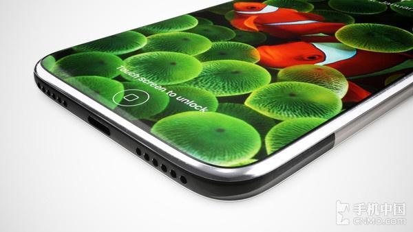 看正面,iPhone 8无边框和无实体Home键的设计在概念图中得到了完美地展现。不过,不同于小米MIX。按照设计师的构想,iPhone 8仅仅是取消了“下巴”,保留了“额头”和上面的听筒、自拍镜头,不至于像小米MIX一样很大程度地改变用户使用习惯。